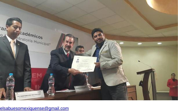 Luego de realizar los diplomados en Administración de la Hacienda Pública Municipal ante el Instituto Hacendarios del Estado de México y de Contabilidad Gubernamental ante la Asociación Nacional de Organismos de Fiscalización Superior y Control gubernamental tuve el privilegio de recibir las constancias que me acreditan como diplomado en los temas arriba mencionados.